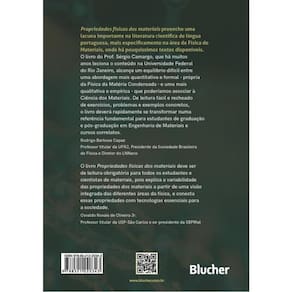 Propriedades físicas dos materiais preenche uma lacuna importante na literatura científica de língua portuguesa, mais especificamente na área de Física de Materiais, onde há pouquíssimos textos disponíveis.O livro do Prof. Sérgio Camargo, que há muitos anos leciona o conteúdo na Universidade Federal do Rio Janeiro, alcança um equilíbrio difícil entre uma abordagem mais quantitativa e formal - própria da Física da Matéria Condensada - e uma mais qualitativa e empírica - que poderíamos associar à Ciência dos Materiais. De leitura fácil e recheado de exercícios, problemas e exemplos concretos, o livro deverá rapidamente se transformar numa referência fundamental para estudantes de graduação e pós-graduação em Engenharia de Materiais e cursos correlatos.Rodrigo Barbosa Capaz Professor titular da UFRJ, Presidente da Sociedade Brasileira de Física e Diretor do LNNanoO livro Propriedades físicas dos materiais deve ser de leitura obrigatória para todos os estudantes e cientistas de materiais, pois explica a variabilidade das propriedades dos materiais a partir de uma visão integrada das diferentes áreas da física, e conecta essas propriedades com tecnologias essenciais para a sociedade.Osvaldo Novais de Oliveira Jr.Professor titular da USP-São Carlos e ex-presidente da SBPMat