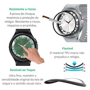 Proteção de tela nano 3d para galaxy watch 6 classic 47mm Cor: borda preta Qualidade e compra garantida Atendimento qualificado Enviamos seu pedido em até 1 dia útil após confirmação do pagamento