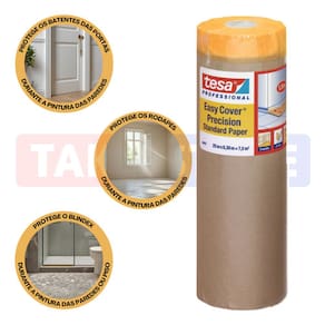 Ficha Técnica: Marca: Tesa Modelo: Easy Cover Salva Rodapé Dimensão: 25m x 30cm = 7,5m² Material: Combinação de papel de máscara e crepe de precisão Uso: Proteção de rodapés, pisos, vidros, batentes e paredes em pintura
