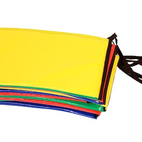 Proteção Protetor de Molas para Cama Elástica Pula Pula 4,27m Melhor Qualidade. Indicada para Cama Elástica Nacional ou Importada no formato circular com diâmetro de 4,27m. IMPORTANTE: Para saber o diâmetro de sua cama faça o seguinte procedimento: - Com ela montada, meça com uma trena de ferro a ferro pelo meio da cama, assim irá encontrar o diâmetro correto. Especificações - Proteção sobre molas coloridas com revestimento em XP300, tanto do lado superior e inferior; - Produto não absorve água; - Revestimento interno com polipropileno expandido; - Costura dupla no acabamento; - Fitas CB20mm para amarração; - Multicolorida amarelo, azul, verde e vermelho ; - Não acompanha acessórios; - Garantia: 90 dias contra defeito de fabricação; - Validade do Produto: Indeterminada. DICA: Para maior durabilidade do produto, após o uso conservar em local fechado. A proteção é confeccionada com as melhores matérias-Primas. Ean: 2960000381418