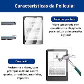 Proteção impenetrável para o seu kindle 6 com a película de vidro proteja a tela com o escudo mais resistente e durável do mercado. Sinta a tranquilidade de saber que sua tela está protegida contra riscos, arranhões e impactos indesejados.