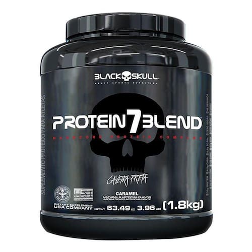O seu produto Caveira Preta para enfrentar a guerra do dia a dia. Com 25g de proteinas, este blend pode ser tomado a qualquer hora do dia e traz proteinas de rapida, media e longa duracao que mantem a disponibilidade de aminoacidos de qualidade por mais tempo na corrente sanguinea. Nos deliciosos sabores Chocolate e Amendoim.