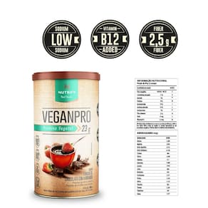 VeganPro Nutrify é um suplemento que entrega o equilíbrio perfeito entre duas proteínas de origem vegetal: a proteína orgânica isolada do arroz integral e a proteína orgânica de ervilha. Este superalimento é isento de lactose, glúten e tem baixo teor de sódio. VEGANPRO NUTRIFY é também rico em vitamina B12, nutriente importante em dietas vegetarianas e veganas, e não tem adoçantes ou conservantes artificiais. Marca: Não Informado