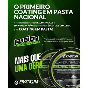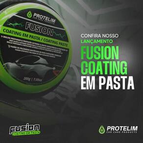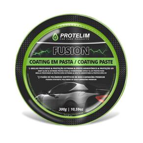 Protelim fusion coat 300g Fusion é um coat desenvolvido com tecnologia de última geração, aliando a performance da carnaúba premium com a fusão de polímeros sintéticos, protegendo a pintura do seu carro contra as ações do sol e do tempo por até 12 meses. Fusion promove brilho profundo, hidro repelência e toque aveludado. Fusion proporciona resistência química, e protege a pintura da poluição, maresia, corrosão e degradação.