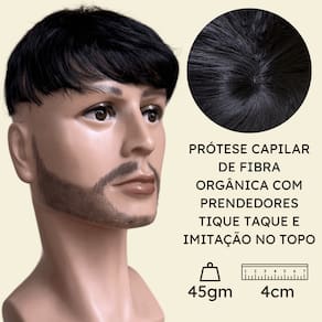 - Fibra orgância premium; - Prótese de tique taque, fácil e prática de utilizar (Sem necessidade de manutenção); - Cabelo com aparência natural; - 4 centímetros de comprimento; - Densidade em 110%; - Produto ligeiramente flexível; - Possui quatro tic-tacs internos para fixação segura; - Dimensões 17x17; - 45g em média.