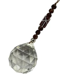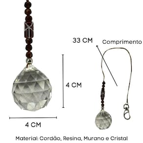 Protetor ambiente cristal facetado xangô marrom 40 mm cristal facetado 40 mm transparente e 8 contas de cristal 6 mm marrom para pendurar com argola e cordão de 33 cm. O cristal multifacetado é indicado para corrigir a energia na planta de qualquer ambiente. É utilizado pela técnica de feng shui para corrigir fluxos energéticos e curar doenças de uma casa. O cristal pode ser utilizado para curar faltas de áreas de uma planta de acordo com o feng shui, pode ser colocado no batente superior da porta do banheiro para amenizar a corrente energética que sai dele, quando esse banheiro fica de frente para o quarto ou é de uma suíte. Use esse cristal também no ponto central de um corredor que não tem iluminação suficiente, que não tem luz ou que seja maior que 3 metros. Dimensões aproximadas: comprimento: 4 cm largura: 4 cm altura: 4 cm peso aproximado da peça: 90 g