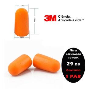 Descrição protetor auditivo do tipo inserção moldável, confeccionado em espuma, em formato de cone, com a base plana e o topo arredondado, de forma a proporcionar maior conforto ao usuário. O protetor é disponível em tamanho único, sendo que a característica de ser moldável faz com que seja adaptável à maioria dos condutos auditivos. O modelo 3m 1100 não possui cordão. Indicações de uso: os protetores auditivos de espuma moldável 3m são designados para inserção no canal auditivo, ajudando a reduzir a exposição aos níveis perigosos de ruído e outros sons indesejados. Deve ser utilizado mediante o conhecimento e aprovação das áreas de higiene, segurança e medicina do trabalho ou responsável pela empresa. Desempenho: testado de acordo com a norma ansi s12.6:2008 confortável para o uso em longos períodos de tempo ca:5674 atenuação: 29 db nrr o mais alto da categoria nrrsf = 16 db especificações: náo é reutilizável, ou seja os protetores auriculares são descartáveis. O tipo de proteção auditiva é na orelha. Detalhes diâmetro da base: 1,3 cm / diâmetro do topo: 1,0 formato: cilíndrico cor: alaranjado peso aproximado: 1.0g/par verificação da vedação: sempre ajuste os protetores a fim de vedar o canal auditivo. Quando os protetores estão corretamente inseridos, sua voz deve parecer oca e os sons ao seu redor não devem parecer tão altos quanto anteriormente. Tente puxar levemente o protetor auditivo; ele não deve se mover facilmente. Se o protetor se mover facilmente, remova-o e insira-o, com cuidado, o mais profundamente possível no canal auditivo, seguindo as instruções de colocação. Verifique frequentemente a vedação durante o tempo em que está usando o protetor. Se os protetores se deslocarem, a proteção ao ruído pode ser perdida. Retirando os protetores auditivos: para maior conforto, gire suavemente o protetor para desfazer a vedação, antes de retirá-lo. Cuidados e : atenção: reinserir protetores auditivos sujos em suas orelhas pode causar desconforto e/ou irritação da pele no canal auditivo. Não utilize cremes ou loções para as mãos imediatamente antes de roletar os protetores auditivos e inseri-los no canal auditivo, pois estas substâncias podem danificar os protetores. Não tente limpar protetores auditivos de espuma com água, álcool ou outros desinfetantes que possam agredir os protetores. Sempre lave e enxague as mãos antes de colocar os protetores auditivos. Não lave protetores auditivos de espuma. Troque os protetores auditivos de espuma sujos por um novo par. Observe se os protetores não se encontram danificados antes de cada uso. Se observar algum corte ou outro dano, jogue os protetores fora e substitua-os por um novo par. Importante: deixar de seguir as indicações de uso e ajuste conforme instruções da embalagem pode reduzir a efetividade do protetor auditivo. Vida útil: após aberta a embalagem, a vida útil máxima deste protetor é de 1 dia, considerando-se o uso contínuo em uma jornada média de trabalho de 8 horas, sempre respeitado o seu prazo máximo de validade descrito na embalagem e respeitadas as orientações contidas no boletim técnico. Atenção: estes protetores deverão ser antecipadamente substituídos por sofrerem influência do ambiente e da atividade de trabalho, mesmo que não tenham atingido sua vida útil máxima. A deve ser feita sempre que se apresentarem deformados, quebrados, rasgados, endurecidos ou com alteração em sua forma, dimensão, cor ou maciez .As imagens são meramente ilustrativas
