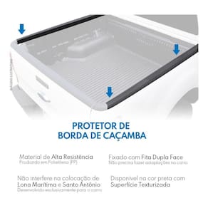 Protetor Borda Lateral Caçamba Nissan Frontier 2017 Diante Preto Especifico Protetor de borda lateral de caçamba Aplicação: frontier Intalação : Instalado através de fita dupla face 3m. Conteúdo da embalagem: - 2 protetores de borda Especificações especificação técnica: - fabricado em polietileno pp - disponível na cor preta - fita dupla 3m - específico para o modelo do carro - garante proteção para a caçamba do carro - encaixe sob medida. - fixação nas bordas da caçamba. Fabricado em plástico polietileno, protege a borda da caçamba contra pequenas batidas, riscos ou manchas. Produto de fácil instalação pois é fixado com cola dupla face da 3m,basta limpar bem o local onde será fixada a peça, Não impede em nada sua instalação junto com santo antonio ou capota marítima Importante: de 6 meses direto com o fabricante não cobre mal uso ou erro de instalação. Valor unitário. Imagens meramente ilustrativas. Nosso horário de atendimento é de segunda a sexta das 9 as 17 horas exceto feriados . Boa compra... Atenção: as compras realizadas em nome de pessoa jurídica estão sujeitas à cobrança de icms, conforme protocolo icms 41, de 4 de abril de 2008. Caso você tenha dúvidas sobre o percentual a ser aplicado, consulte a cláusula segunda, 1 do referido protocolo. Marca: Não Informado