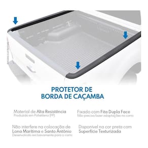 Fabricado em plástico polietileno, protege a borda da caçamba contra pequenas batidas, riscos ou manchas.