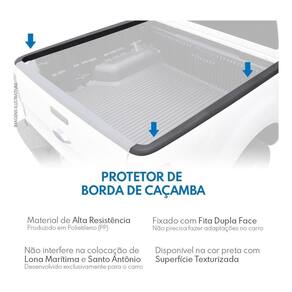 Protetor Borda Lateral Toyota Hilux 2016 Em Diante Cab Dupla Preto Especifico Protetor de borda lateral de caçamba Aplicação: hilux cabine dupla Intalação : Instalado através de fita dupla face 3m. Conteúdo da embalagem: - 2 protetores de borda Especificações especificação técnica: - fabricado em polietileno pp - disponível na cor preta - fita dupla 3m - específico para o modelo do carro - garante proteção para a caçamba do carro - encaixe sob medida. - fixação nas bordas da caçamba. Fabricado em plástico polietileno, protege a borda da caçamba contra pequenas batidas, riscos ou manchas. Produto de fácil instalação pois é fixado com cola dupla face da 3m,basta limpar bem o local onde será fixada a peça, Não impede em nada sua instalação junto com santo antonio ou capota marítima Importante: de 6 meses direto com o fabricante não cobre mal uso ou erro de instalação. Valor unitário. Imagens meramente ilustrativas. Nosso horário de atendimento é de segunda a sexta das 9 as 17 horas exceto feriados . Boa compra... Atenção: as compras realizadas em nome de pessoa jurídica estão sujeitas à cobrança de icms, conforme protocolo icms 41, de 4 de abril de 2008. Caso você tenha dúvidas sobre o percentual a ser aplicado, consulte a cláusula segunda, 1 do referido protocolo. Marca: Não Informado