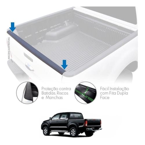 Protetor de tampa traseira de caçambaAplicação: hiluxAno: 2005 2006 2007 2008 2009 2010 2011 2012 2013 2014 2015Intalação :Instalado através de fita dupla face 3m.Conteúdo da embalagem:- 1 protetor de tampa de caçambaEspecificações especificação técnica:- fabricado em polietileno pp- disponível na cor preta- fita dupla 3m- específico para o modelo do carro- garante proteção para a tampa traseira da caçamba do carro- encaixe sob medida.- fixação na tampa traseira da caçamba.Fabricado em plástico polietileno, protege a borda da caçamba contra pequenas batidas, riscos ou manchas.Produto de fácil instalação pois é fixado com cola dupla face da 3m,basta limpar bem o local onde será fixada a peça,Não impede em nada sua instalação junto com santo antonio ou capota marítimaImportante:Garantia de 6 meses direto com o fabricante não cobre mal uso ou erro de instalação.Valor unitário.Imagens meramente ilustrativas.Nosso horário de atendimento é de segunda a sexta das 9 as 17 horas exceto feriados .Boa compra...Atenção: as compras realizadas em nome de pessoa jurídica estão sujeitas à cobrança de icms, conforme protocolo icms 41, de 4 de abril de 2008. Caso você tenha dúvidas sobre o percentual a ser aplicado, consulte a cláusula segunda, 1 do referido protocolo.