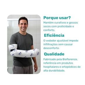 probanho adulto • protetor de braço impermeável • capa para gesso adulto • proteção curativo banho • bioflorence braço • protetor impermeável para curativo • capa protetora para imobilização • vedação compressiva adulto