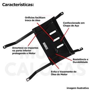 O protetor de cárter é o escudo que protege o cárter do motor. O cárter é o recipiente metálico onde fica acumulado o óleo do motor, responsável pela Lubrificação durante o seu funcionamento. Como está localizado na parte mais baixa do motor o cárter pode sofrer danos, mesmo pequenas batidas Podem ocasionar o vazamento de todo óleo do motor. Apesar de sua importância, o protetor de cárter é considerado só um acessório pelos fabricantes dos veículos E poucos saem de fábrica com ele. Protetor de Carter para o Fiat Uno 1985 a 2010. CARACTERÍSTICAS: - Confeccionado em Chapa de Aço - Modelo Específico para o Veículo - Fácil Troca de Óleo - Cor: Preto Fosco - Referência: 512p2 ITENS INCLUSOS: - Um 1 Protetor de cárter do modelo anunciado. - Um 1 Jogo de parafusos para fixação. DIMENSÕES - Comprimento: 86 cm - Largura: 56 cm - Altura: 7 cm - Espessura: 1,2 mm INSTALAÇÃO A instalação é feita de forma simples, podendo ser feita por você mesmo. de 30 dias para defeitos de fabricação. Marca: Não Informado Ean: 7897789073065