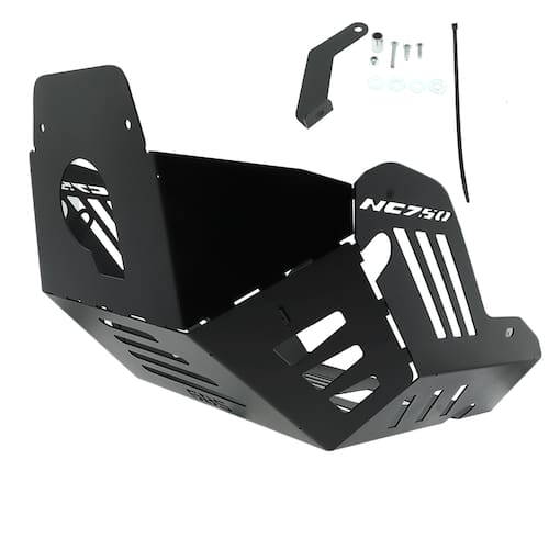 É fixado abaixo da moto e sobrepõe o cárter e uma parte do motor, onde pedras e troncos podem facilmente danificar se estiverem desprotegidas.