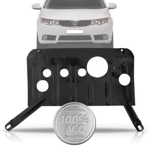 Características: de ótima qualidade. Fabricado em chapa de aço resistente. Encaixe e alinhamento perfeito. Cor preta. Furações arredondadas. Compatível com os modelos: Cerato 2009. Cerato 2010. Cerato 2011. Cerato 2012. Cerato 2013. Importante: de 3 meses. Não nos responsabilizamos por instalação mal realizada. A instalação deve ser feita por um profissional especializado. Marca: Não Informado