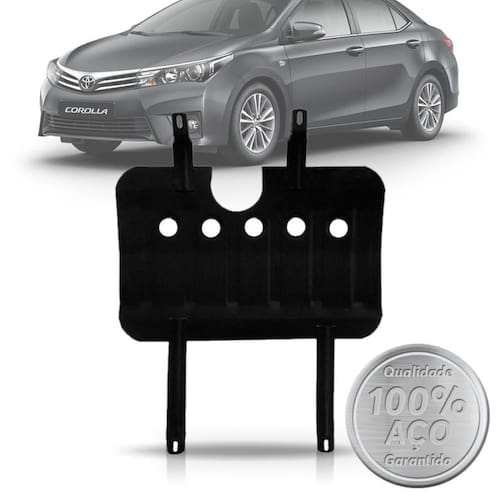 Características: de ótima qualidade. Fabricado em chapa de aço resistente. Encaixe e alinhamento perfeito. Cor preta. Furações arredondadas. Compatível com os modelos: corolla 2015. Corolla 2016. Corolla 2017. Importante: garantia de 3 meses. Não nos responsabilizamos por instalação mal realizada. A instalação deve ser feita por um profissional especializado. Marca: Avt