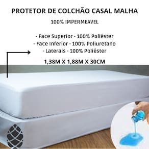 O protetor de colchão de Malha Casal possui ação antimicrobiana contra fungos, ácaros e bactérias. É impermeável e impede a passagem de água, óleos e líquidos para o colchão, mantendo o limpo e com aparência de novo por muito mais tempo.Produzido em malha com tecnologia super impermeável e elásticos para envolver toda a lateral, o Protetor de Colchão de Malha é ideal para quem quer proteger o colchão sem interferir na aparência da cama. Fácil e prático de usar, possui ajuste perfeito ao colchão e pode ser lavado em máquina.