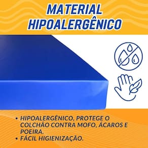 Aumenta a vida útil do colchão; Impermeável, prevenindo manchas, poeira, sujeira e mau odor; Fácil de limpar; Fácil de colocar, com elástico em toda sua extensão; Material premium resistente, difícil de rasgar; Hipoalergênico, protegendo contra mofo e aglomerados de bactérias.