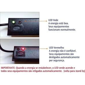 O ÚNICO NO MERCADO COM CIRCUITO ELETRÔNICO MICROPROCESSADO. Para desligamento automático com bloqueio de sub/sobretensão e picos EM CASO DE VARIAÇÃO E SOBRECARGA DE ENERGIA. Com rearme automático de saída após 13 segundos de energia normal para o consumo. É um dispositivo que protege equipamentos eletrônicos - TV LCD, Wifi, Roteador, Video Game, computadores, e equipamentos telefônicos - Celulares, Carregadores, etc, contra surtos de energia, ruídos de rede provenientes de descargas atmosféricas e picos de tensão, preservando e aumentando a vida útil dos equipamentos.