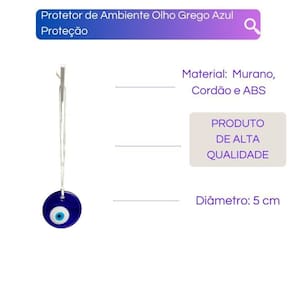 Protetor de Ambiente Olho Grego Azul 5 cm em Murano Proteção O olho grego possui poderes protetores e defensivos que ajudam a afastar as energias negativas e manter as pessoas e seus ambientes seguros.