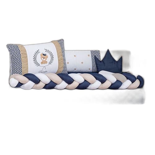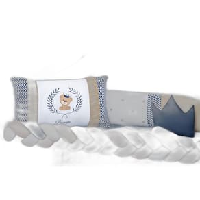 Protetor De Berço Menino Ursinho Ted Protetor Impermeável Total 14 peças 1 edredom 130cm x 75cm 1 cabeceira 0.60 x 0.40 1 lateral 1.28 x 0.25 1 trança 1.28 x 0.12 1 fronha 0,28 x 0,38 1 lençol de cima com bainha 1 bando do mosqueteiro 1.40 x 0.20 1 mosqueteiro 4.50 x 1.50 1 almofada 0.40 x 0.30 1 trocador 0,60 x 0,45 1 saia box 1,30 x 0,70 x 0,30 1 lençol de cima 1,20m x 0,80 cm. 1 protetor impermeável para berço americano 1,30m x 0,80cm. 1 travesseiro 0,30cm x 0,40 Composição: Tecido estampado: 100% algodão. Tecido colorido: 100% poliéster. Tecido lençol : 50% algodão 50% poliéster. Tule : 100% poliamida. Plástico: 100% pvc. Enchimento: 100% poliéster. Edredom dupla face todo matelado com várias costuras. Laterais e cabeceiras com zíper para facilitar a lavagem de seu produto.