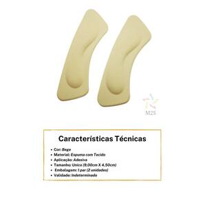 Protetor de calcanhar - adesiva - almofada - full - cor: bege protetor de calcanhar - auto adesivo - descrição do produto: Proteção e conforto. Evita o atrito e formação de bolhas no calcanhar. Ajusta perfeitamente o calçado junto ao calcanhar. A almofada protetora de calcanhar é macia, evita calos e machucados causados por sapatos e tênis, principalmente os novos. Excelente para ajudar no calce de sapatos largos e que estão saindo do pé. Possui super adesivo para fixar o protetor na traseira do calçado. - indicação: Limpar e secar o local a ser aplicado Retirar a fita adesiva do protetor e fixar bem no calçado na parte que encosta o seu calcanhar Ideal para o ajuste de calçados estilo peep toe. - características: Cor: bege Material: espuma eva revestida de tecido Tamanho: único - auto adesiva. Embalagem: 1 par 2 unidades Marca: palazos - : de 30 dias para defeitos de fabricação - validade: Indeterminada. Ean: 7893658103536