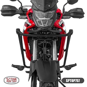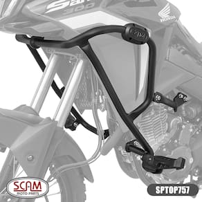 Loja Oficial Giro Moto PartsDesenvolvido para absorver os impactos e manter a integridade do chassi em caso de tombos e quedas, o protetor de carenagem SCAM reduz a chance de danos mais graves ás carenagens da motocicleta nestas situações, proporcionando tranquilidade ao pilotar e manobrar. Com design arrojado este protetor incrementa o visual da motocicleta e é compatível com a fixação de faróis auxiliares.Especificações:• Marca: Scam • Modelos compatíveis: Honda Sahara 300 (2024 em diante)• Fixação: Utiliza potos de fixação já existentes na estrutura da motoMateria: Tubo aço carbono 22mm de diâmetro• Cor: Preto Fosco• Tratamento de superfície contra corrosão