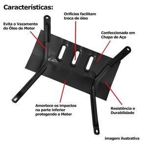 CARACTERÍSTICAS: - Confeccionado em Chapa de Aço - Modelo Específico para o Veículo - Fácil Troca de Óleo - Cor: Preto Fosco - Referência: 534P2