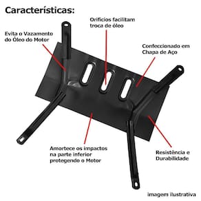 CARACTERÍSTICAS: - Confeccionado em Chapa de Aço - Modelo Específico para o Veículo - Fácil Troca de Óleo - Cor: Preto Fosco - Referência: 534P2