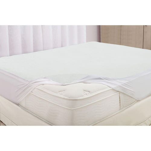 Tecido felpudo impermeável - Saia lateral cotorno com elástico - Respirável - Lavável - Impede a transmissão de alergias - Composição: parte superior: 50% algodão/50% poliéster, parte inferior: 100% pvc, saia em contorno: 100% poliéster - Dimensões: 1,60m x 2,00cm com 40cm de altura - Contém: 1 Protetor para colchão felpudo queen1,60m x 2,00m com 40cm de altura - Somente para colchões no tamanho QUEEN - Marca: Sultan