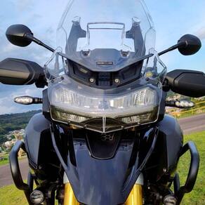 Com uma lente frontal em acrílico de 4 mm, o protetor proporciona resistência contra impactos, protegendo seu farol contra pedras, cascalho e outros detritos da estrada. O acabamento em chapas de aço carbono com pintura epoxi preta fosca não apenas acrescenta um toque de elegância e agressividade à sua motocicleta, mas também garante resistência à corrosão mesmo nos climas mais adversos.
