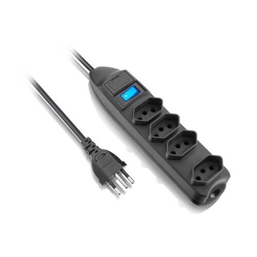Protetor de Linha 4 Entradas Chave liga e desliga Fusível e Varistor para proteção contra surtos Fusível reserva Tomada especial para fontes 1,5 metros Plugue 2P+T Tensão máxima: 250Vca 10A