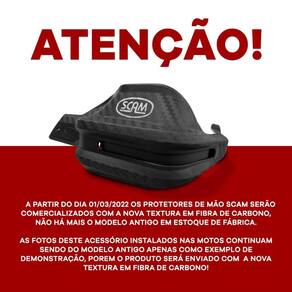 Desenvolvidos para proporcionar conforto, os protetores de mãos Scam protegem as mãos do piloto do contato com cascalho, galhos, lama e afins durante o trajeto e também são capazes de absorver pequenos impactos e reduzir a chance de danos aos manetes em caso de tombos e quedas. Com design arrojado, além do conforto, este acessório incrementa o visual da motocicleta sem interferir na ciclística. Os produtos Scam contam sempre com matéria-prima certificada, normalizada e um rígido controle de qualidade. Esses fatores, aliados à tecnologia empregada na fabricação, garantem durabilidade para você e sua motocicleta viajarem com toda segurança e confiabilidade que os produtos Scam oferecem.