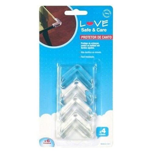 Incluídos 4 protetores de silicone e adesivos para fixação. Protetor de Quina com 4 Unidades Love protege as crianças contra as batidas em bordas agudas, não danifica os móveis e fácil de instalar.