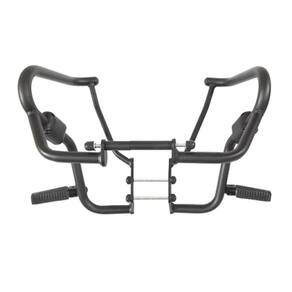 Desenvolvido em tubo redondo 1’’ espessura 1,9 mm, chapas 6,3 mm, acabamento pintura eletrostática pó preto fosco, acompanha parafusos, porcas , espaçadores, jogo de proteção plástica e pedaleiras removíveis.
