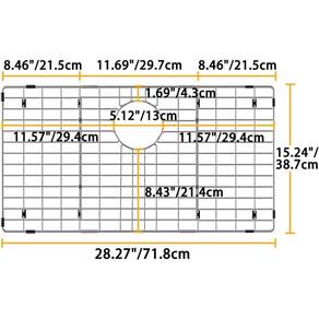 MIYUPTC Grade protetora de pia, pia de aço inoxidável de 72 cm C x 38 cm L, grades de pia de drenagem traseira, grades inferiores de pia grande, acessórios universais de pia para pia de cozinha - Comprimento 72 cm x largura 38,5 cm, diâmetro do orifício de drenagem traseiro: 13 cm; suporte de altura 2,5 cm. Meça o tamanho antes de comprar. - A grade de pia não apenas protege a pia da sua cozinha, mas também vem com uma variedade de acessórios para maior conveniência. Use-o para secar pratos, descongelar alimentos ou até mesmo como um rack de resfriamento. Melhore a funcionalidade do espaço de trabalho da sua cozinha com esta adição versátil! - Este rack de pia para fundo da pia é feito de aço inoxidável 304 durável, oferecendo excelente resistência contra corrosão e ferrugem. É projetado para facilitar a limpeza e desempenho duradouro. O acabamento superior adiciona um toque elegante, moderno e elegante à pia da sua cozinha. - Uma grelha de pia é a maneira mais simples de proteger sua pia de arranhões e danos causados por panelas, panelas, pratos, talheres, copos e muito mais. Com seu design de grade aberta, permite que a água drene livremente durante o uso. - Se você receber produtos rachados ou não estiver 100% satisfeito com nossos produtos, sinta-se à vontade para entrar em contato com nosso atendimento ao cliente. Forneceremos a melhor solução para você dentro de 24 horas.