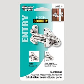 Este protetor de porta do bar de balanço aumentará a paz de espírito ao atender a porta, permitindo que a porta seja aberta ligeiramente para visualização. Quando travada, uma bola no goleiro se entrelaça com o bloqueio da barra e impede que um ino empurre seu caminho. Embora um guarda padrão da porta do swing bar possa adicionar grande segurança à sua casa, condomínio, apartamento/apartamento, cabine, casa de férias, quarto de hotel ou quarto de motel, houve alguma preocupação com a ampla disponibilidade de ferramentas de liberação de emergência, que são destinadas a liberar guardas da porta do swing bar em casos de emergência. Melhoramos o design padrão do protetor de porta e adicionamos uma inovadora trava de segurança de volta do polegar reserva que bloqueia a ferramenta de liberação de desengatar a trava do protetor de porta. Em casos de emergência, as equipes de segurança do hotel ou de emergência podem desligar o polegar da unidade aplicando aproximadamente 100 quilos de força na porta. ( note que 100 libras. A força é muito maior do que um simples chute, então o recurso de liberação de emergência não compromete sua segurança.) além disso, depois que a trava de giro do polegar se rompe, a unidade ainda funciona como uma fechadura tradicional da porta da barra de balanço e uma ferramenta de acesso de emergência anti-lockout especialmente projetada é necessária para balançar o protetor da porta para fora do lugar. Para ajudar a evitar a entrada forçada em sua casa, é sempre uma boa ideia engatar a trava de giro do polegar reserva sempre que você não estiver usando ativamente sua porta. O Defender Security by Prime-Line oferece uma linha completa de hardware de segurança projetado para proteger sua casa e seus entes queridos. Navegue pela nossa seleção completa na Amazon para descobrir muitos mais fáceis de instalar soluções de segurança para sua casa ou negócios.