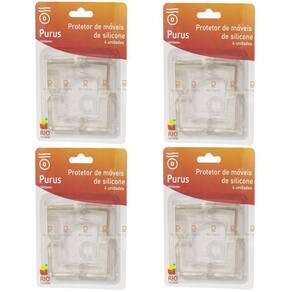 Protetor De Silicone Quina Canto Mesa Bebê Criança 16 Unid Kit com 16 protetores de silicone para cantos de móveis 4 pacotes com 4 unidades cada