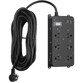 - Tomada elétrica externa: 1 porta USB-C, 2 portas USB e 6 tomadas CA fornecem energia e carregamento para até 9 dispositivos. Cabo extra longo de 7,6 m, cobre puro de 16 AWG. Plugue plano, design montável na parede.