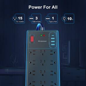 O protetor contra sobretensão IECOPOWER Power Strip com USB, cabo de extensão de 10 pés e 4 portas de carregamento USB inteligentes (1 porta USB C) Intelligent oferece velocidade de carregamento para atender às necessidades de seus dispositivos. Proteção múltipla O filtro elétrico IECOPOWER de 15 tomadas possui proteção contra sobretensão de 2800 joules, proteção contra sobrecarga, proteção contra sobretensão, proteção contra sobrecorrente, proteção contra curto-circuito, protegendo seus componentes eletrônicos contra picos e flutuações. Interruptor de desligamento com reinicialização Disjuntor embutido, se a carga de energia exceder a potência nominal de 1875 W, o disjuntor desligará para proteger seus dispositivos. Neste momento, você deve reiniciar o botão liga/desliga. Saídas AC amplamente espaçadas Design de 15 tomadas AC com espaçamento amplo para você conectar adaptadores grandes com facilidade, sem bloquear outras tomadas. Design paraf para montagem na parede com 2 orifícios de montagem em forma de T na parte traseira do filtro de alimentação USB, monte-o facilmente na parede horizontal ou verticalmente. Conector plano de ângulo reto de 45° O plugue plano de baixo perfil facilita o acesso às tomadas de parede que estão atrás do sofá ou da cama, sem se preocupar em bloquear as tomadas inferiores da parede. Capa resistente ao calor feita de material premium à prova de fogo para PC, que pode suportar temperaturas de até 1382 ?. Faixa de alimentação de extensão de 10 pés adequada para escritório, cozinha, sala de estar e quarto sem se preocupar com a limitação de distância. Especificações: Item: Surge Protector Power Strip Quantidade: 15 plugues AC+3 portas USB+ 1 porta tipo C Corrente nominal: 15A Tensão nominal: 125V Potência máxima: 1875W Circuito AC Joules: 2800 Joules Classificação de potência do carregador USB: 5V-4A Entrada do carregador USB: 100-240 VAC 50/60 Hz Saída do carregador USB: 20W máximo, 5V/2,4A MAX em cada porta e 5V/3A, Porta USB C MAX Material do cabo: 14 AWG* 3 m Comprimento do cabo: 10 pés O pacote inclui: 1 x protetor de sobretensão Power Strip com 15 tomadas e 3 portas USB +1 porta USB C 1 x manual de instruções