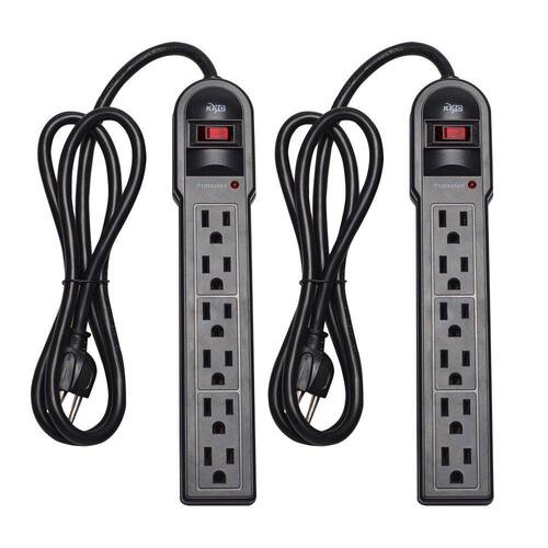 Protetor de sobretensão KMC 6-Outlet Power Strip, pacote com 2 unidades, 900 Joules, cabo de extensão de 4 pés, proteção contra sobrecarga, preto