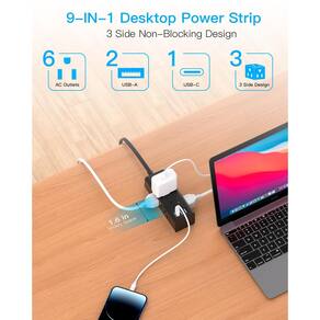 - ?Cabo de extensão 9 em 1 com várias tomadas?O filtro de linha plano pode transformar 1 tomada em 6 tomadas CA, 2 USB-A e 1 USB-C, que podem carregar até 9 dispositivos ao mesmo tempo. A porta USB C pode carregar até 5V/3A. 2 portas USB-A podem carregar até 5V/2,4 A no máximo, todas as portas USB de saída são 5V/4,5A, compatíveis com seu celular, laptop, tablet, fone de ouvido ou câmeras sem uma variedade de conversores.
