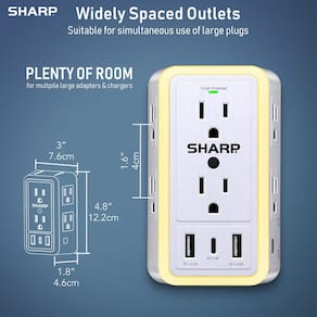O SHARP 9 EM UM POWER FOR ALL + NIGHTLIGHT é a melhor solução para todas as suas necessidades de energia. Este filtro de linha é projetado para oferecer a máxima conveniência e eficiência com sua funcionalidade 9 em 1. Com três portas USB de carregamento rápido (2 USB-A, 1 USB tipo C), você pode carregar facilmente vários dispositivos ao mesmo tempo. O filtro de linha também possui um design de 3 lados, que permite que você use todas as tomadas ao mesmo tempo sem se preocupar em não ter espaço para todos os seus blocos adaptadores de plugue grandes. O supressor de surtos de parede USB SHARP atua como um protetor contra picos de linha e tem seis tomadas bem espaçadas, oferecendo amplo espaço para conectar todos os seus dispositivos essenciais. As tomadas são projetadas para acomodar diferentes tamanhos de plugue, tornando-as ideais para uso com uma ampla variedade de eletrônicos e receptáculos. O filtro de linha também possui uma luz noturna LED inteligente, que ilumina seu espaço, facilitando a localização e a conexão de seus dispositivos, mesmo em condições de pouca luz. Este recurso é particularmente útil em quartos, corredores ou outras áreas onde você precisa navegar no escuro. No geral, o carregador de parede USB SHARP é um acessório essencial para qualquer casa, escola ou escritório. Oferece uma solução de energia confiável e conveniente que certamente simplificará sua vida. Conecte-o a uma tomada de parede padrão hoje e aproveite os benefícios de ter várias tomadas no mesmo espaço. Régua de linha com filtro de linha, protetor contra surtos, tomada com portas USB, tomadas USB, tomadas de tomada de parede com portas USB - Alimentação 9 em um para todos + luz noturna: 3 portas USB de carregamento rápido (2 USB-A, 1 USB tipo C), filtro de energia de 3 lados, com 6 tomadas espaçadas com adaptador e luz noturna inteligente LED. Conecte a uma tomada de parede padrão e converta esse espaço em muito mais tomadas no mesmo espaço. - Tomadas de espaço amplo servem em vários adaptadores grandes: 6 tomadas CA com protetor de surto integrado com mais espaço entre as tomadas, permitindo que vários adaptadores tipo bloco de tamanho maior caibam e não bloqueiem tomadas. Espaçamento maior torna mais fácil de usar para todos os tipos de equipamentos com blocos de carregamento maiores. - Energia USB inteligente: o dispositivo também contém 3 portas USB (2 USB-A, 1 USB tipo C) que pode carregar seus dispositivos inteligentes rapidamente enquanto fornece proteção contra surtos. Converta facilmente suas tomadas de parede em tomadas com portas USB e luz noturna - Luz noturna inteligente: projetada com um sensor inovador de luz dia/noite que liga automaticamente apenas quando a iluminação da sala escurece. O brilho da luz noturna é ajustável com 4 níveis de brilho (desligado, baixo, médio, alto) controlados por um sensor de toque que permite que você escolha a quantidade certa de luz para suas próprias necessidades. Se a luz noturna não for necessária, ela pode ser ligada/desligada manualmente. - Seguro. Confiável – Projetado para uso confiável e seguro de longa duração, este supressor de picos de filtro de linha Sharp com 6 tomadas e 3 portas USB é um ótimo complemento para sua casa, escritório, escola, garagem ou qualquer lugar que você precise de mais tomadas e capacidade de carregamento.