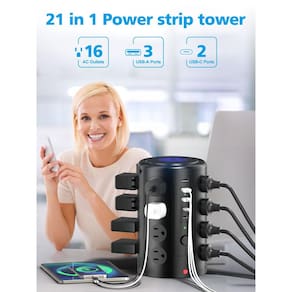 - Faixa de alimentação 21 em 1 com USB-C? Com 16 soquetes AC, 2 portas USB-C e 3 portas USB-A, este filtro de linha pode carregar até 21 dispositivos simultaneamente.