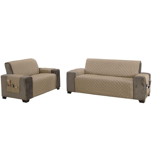Protetor De Sofá Classic 2 E 3 Lugares King Bege O protetor de sofá e suas especificações:Confeccionado com tecido microfibra, agora a qualidade e o conforto do seu sofá estão garantidos. Matelado em formato de losangos, tamanho 5x5, o tecido do seu protetor fica mais firme, trazendo sofisticação, beleza e conforto ao seu sofá. Cada protetor possui porta objetos em um dos braços do sofá. Além disso, o protetor garante alta proteção ao seu sofá, conservando-o muito mais, por um tempo prolongado. Para que serve o protetorO protetor para sofá é considerado uma peça ideal para modernizar o seu ambiente e deixá-lo ainda mais elegante, renovando o visual de sua sala ou escritório. Além disso, ele protege e aumenta a durabilidade do seu sofá de uma maneira muito prática, moderna e bonita. Conteúdo da Embalagem: 01 - Protetor para Sofá de 3 Lugares, sendo: Capa: 1,90m x 1,80m | 2 Braços: 0,80cm x 0,40cm braço do lado direito com porta objetos medida total do produto: 3,35m x 1,90m 01 - Protetor para Sofá de 2 Lugares, sendo: Capa: 1,90m x 1,20m | 2 Braços: 0,80cm x 0,40cm braço do lado direito com porta objetos medida total do produto 2,80m x 1,90m Veste sofá com as seguintes medidas aproximadas: Protetor de 3 Lugares:Altura total do sofá: 97cm Profundidade do assento: 55cm Largura máxima do assento: 1,80m Altura máxima do encosto: 70cm Largura máxima do braço: 27cm Altura do assento: 50cm Largura total do sofá: 2,54m Protetor de 2 Lugares:Altura total do sofá: 97cm Profundidade do assento: 55cm Largura máxima do assento: 1,20m Altura máxima do encosto: 70cm Largura máxima do braço: 27cm Altura do assento: 50cm Largura total do sofá: 1,89m Composição:Tecido: 100% microfibraEnchimento: 100% poliésterForro: 100% Polipropileno acompanha porta objetos nos dois protetores Resumindo: por que adquirir esse lindo produto- Garante alta proteção ao seu sofá.- Apresenta excelente acabamento em costura matelada.- É confeccionado em material da mais alta qualidade.- Garante um visual elegante e conforto para a sua casa.