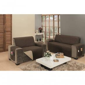 Protetor De Sofá Dupla Face Impermeável Mr 2 E 3 Lugares - Marrom/cáqui