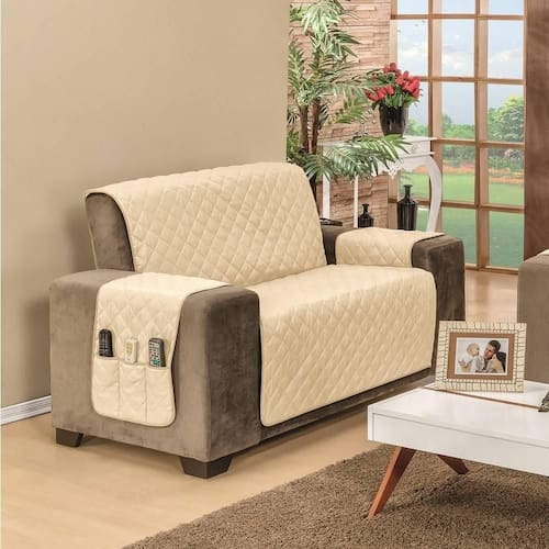 Marca: MR ENXOVAIS | Estampa: Não se Aplica | Medidas: 01 - Protetor para Sofá de 2 Lugares, sendo:Capa: 1,90m x 1,20m | 2 Braços: 0,80cm x 0,40cm (braço do lado direito com porta objetos)(Medida total do produto 2,80m x 1,90m) | Número de Peças: Avulsa | Material: Poliéster | Cor Predominante: Cáqui/ Palha | Cama Indicada: King