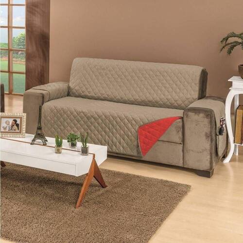 Confeccionado com tecido superior e inferior 100% microfibra, enchimento em 100% poliéster e com acabamento em viés, agora a qualidade e o conforto do seu sofá estão garantidos. Matelado em formato de losangos, tamanho 5x5, o tecido do seu protetor fica mais firme, trazendo sofisticação, beleza e conforto ao seu sofá. Além disso, outra grande vantagem deste lindo protetor é que ele é dois em um, pois ele possui dupla face e pode ser dos dois lados, com cada lado de uma cor, para você poder variar ainda mais o visual do seu ambiente, sempre que quiser. Cada protetor possui porta objetos em um dos braços do sofá, podendo ser utilizado nas duas faces. Além disso, o protetor garante alta proteção ao seu sofá, conservando-o muito mais, por um tempo prolongado.