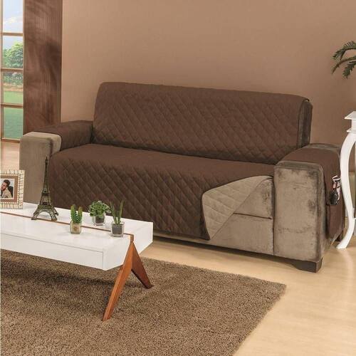 Protetor De Sofá Dupla Face Manu 4 Lugares King - Cáqui/marrom