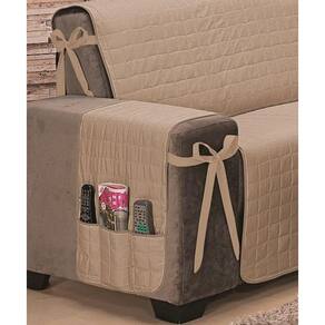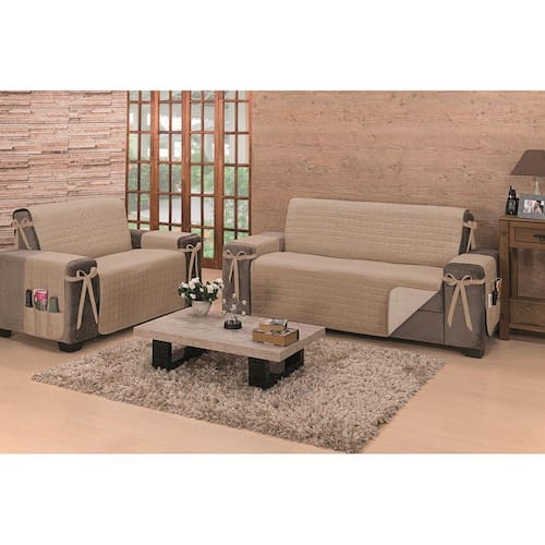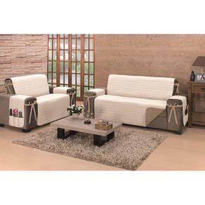 Protetor de Sofá Dupla Face Premium 2 e 3 Lugares - Cáqui e Palha Confeccionado em Percal 150 fios e com acabamento em Viés, o protetor garante a durabilidade e o conforto do seu sofá. Possui 4 laços de fixação para melhor ajuste e porta objetos em um dos braços. Além disso, seu protetor é dois em um e pode ser colocado dos dois lados, para você mudar o visual do ambiente sempre que quiser. Contém: 1 Protetor para sofá de 3 lugares com medidas: Capa: 1,90m x 1,50m / Braços: 80cm x 40cm (porta objetos no braço direito) Medida total do produto: 3,05m x 1,90m 1 Protetor para sofá de 2 lugares com medidas: Capa: 1,90m x 1,10m / Braços: 80cm x 40cm (porta objetos no braço direito) Medida total do produto 2,70m x 1,90m Veste sofá com as seguintes medidas aproximadas: Protetor de 3 lugares: - Altura total do sofá: 97cm - Profundidade do assento: 55cm - Largura máxima do assento: 1,50m - Altura máxima do encosto: 70cm - Largura máxima do braço: 27cm - Altura do assento: 50cm - Largura total do sofá: 2,24m Protetor de 2 lugares: - Altura total do sofá: 97cm - Profundidade do assento: 55cm - Largura máxima do assento: 1,10m - Altura máxima do encosto: 70cm - Largura máxima do braço: 27cm - Altura do assento: 50cm - Largura total do sofá: 1,79m Composição: Tecido superior e inferior: Percal 150 fios 80% algodão/20% poliéster Enchimento: 100% poliéster - Acabamento em viés